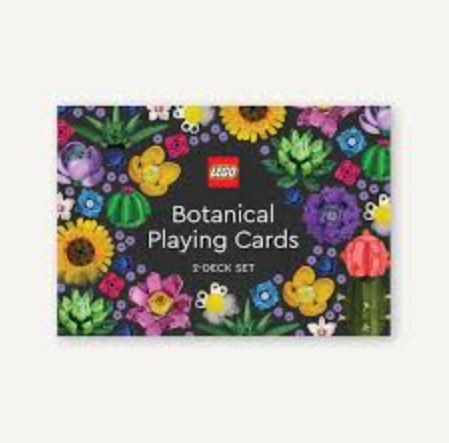 A deluxe boxed set of playing cards that includes two standard 54-card decks featuring vibrant, hand-drawn blossoms and succulents from the bestselling LEGO® Botanical sets.